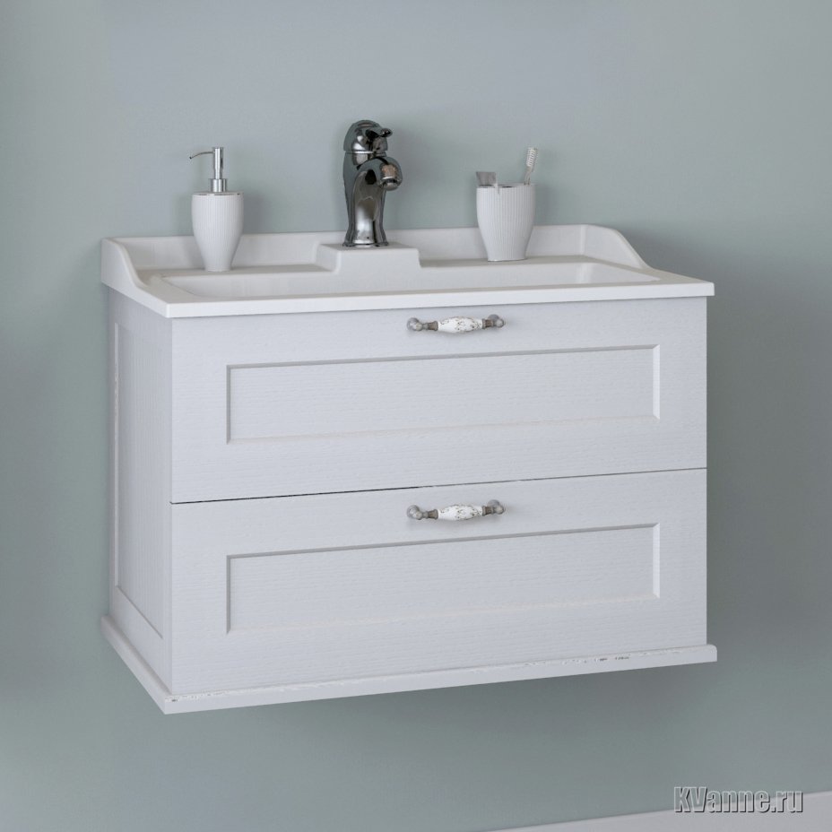 Коллекция Леон создана специально для любителей классического дизайна, предпочитающих современные материалы. Мебель отделана пленкой с фактурой под натуральное дерево, а раковина, изготовленная из литого мрамора, имеет изящные формы, пристенные бортики и площадки, которые делают ее очень удобной. В тумбе установлены 2 ящика, и помимо стандартного подключения водоснабжения и канализации (из стены) предусмотрена возможность подключения труб снизу. На изящной полочке зеркала можно разместить мелочи, которые всегда должны быть под рукой. В нижней части колонны установлена бельевая корзина, а в верхней - полки.