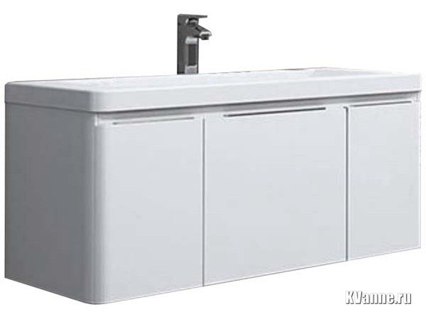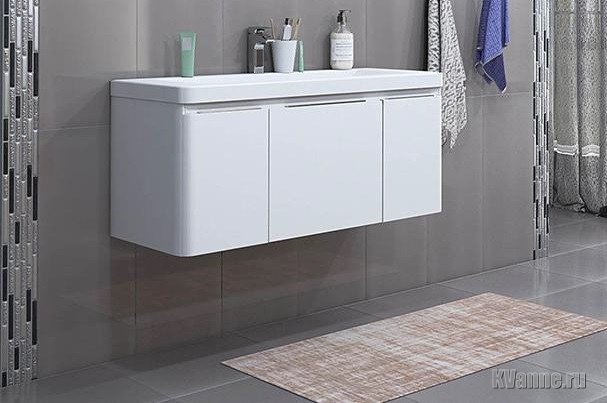 Плавные линии и скругленные углы придают ощущение легкости и безопасности. Фасады окрашены по специальной технологии, поэтому поверхность идеально гладкая с глянцевым оттенком. В центре тумбы расположен ящик, установленный на направляющие скрытого монтажа Hettich. За ним – еще один – скрытый ящик, для мелких предметов. Он снабжен системой push-to-open, то есть открывается легким нажатием.