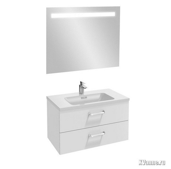 Тумба под раковину Jacob Delafon Vox 80, 2 ящика, изогнутые ручки, белая (меламин)