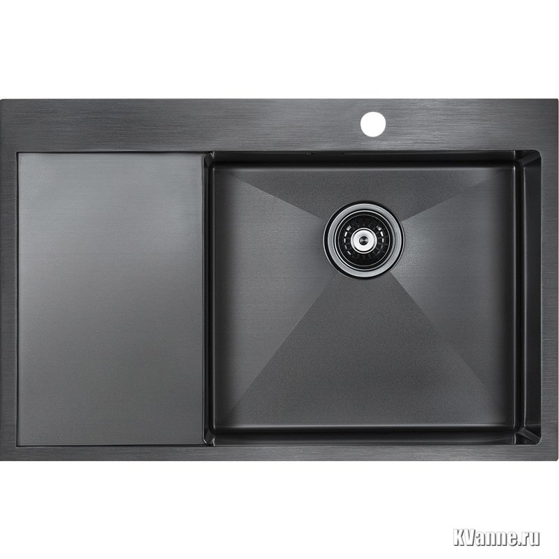 Кухонная мойка Paulmark Elde 78 R PM807851-GMR из нержавеющей стали с поверхностью PVD цвета вороненая сталь. Снабжена очень вместительной глубокой чашей, широкой площадкой под смеситель и левым крылом для сушки посуды. Мойка имеет современный плоский кант. Устанавливается стандартным врезным способом - на столешницу сверху.