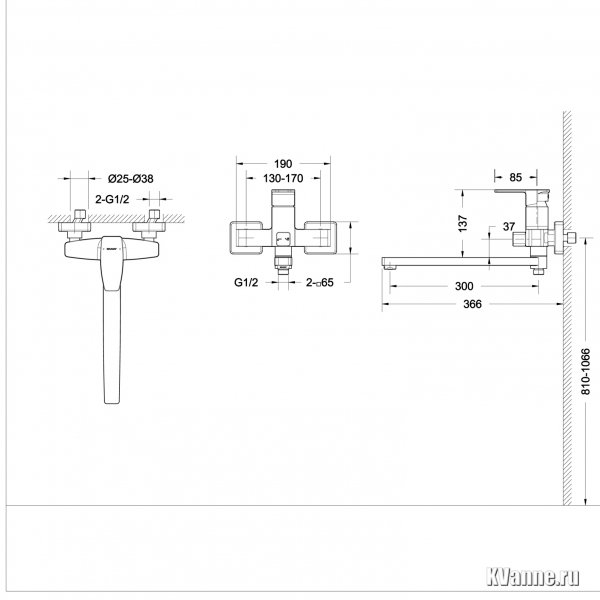 Смеситель для ванны излив 300 мм БЕЗ аксессуаров. Покрытие Хром